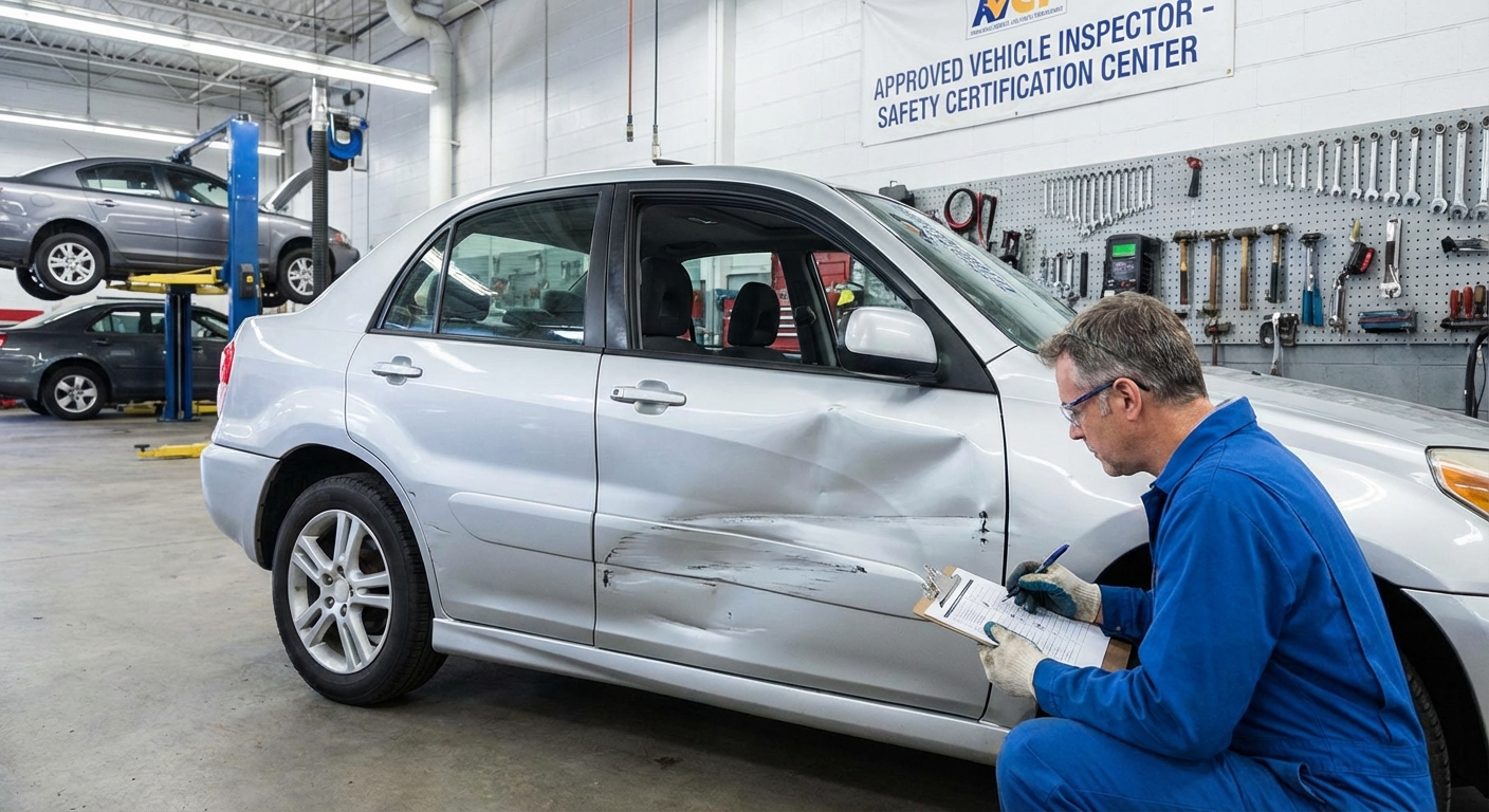 - Schedule a DMV or state-authorized inspection — you typically cannot drive the vehicle to inspection; it must be towed